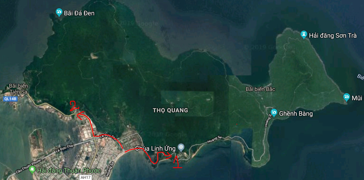 Có 2 hướng đi cho bạn lựa chọn từ điểm xuất phát là ngã 3 Lê Đức Thọ – Trường Sa. Một là rẽ Đông trước – hướng chùa Linh Ứng lên trạm tiếp sóng rồi vòng về cảng Đà Nẵng, hoặc đi ngược lại. Mình chọn hướng đi thứ nhất.